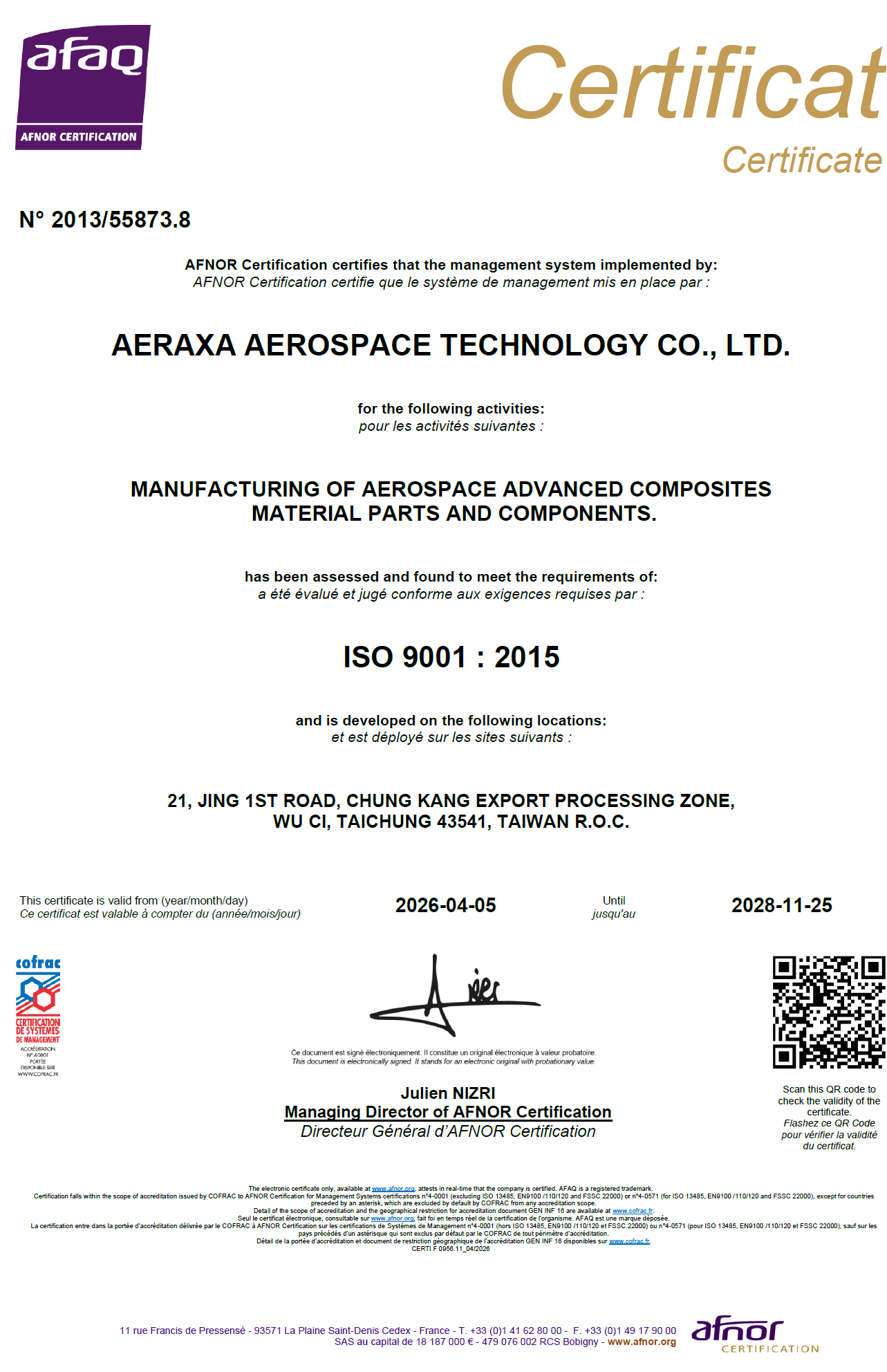 航太品質管理系統認證