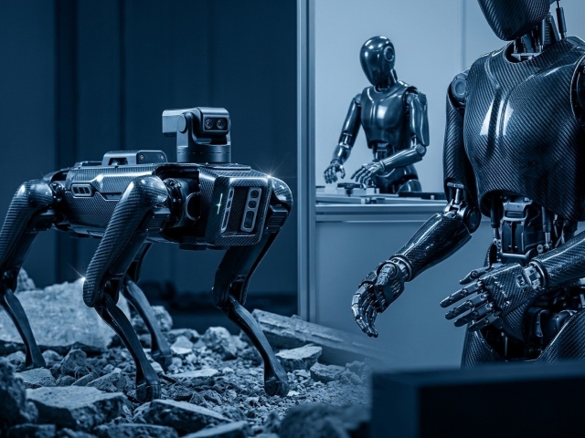 遠端運動關節重量之縮減,可大幅降低系統之轉動慣量,進而提升電池續航力、增進動態反應速度,並確保人機協作之安全性。本公司製造之機器人外部碳纖維防護殼體具備高抗衝擊與耐腐蝕特性;針對機械手臂機構,則生產極低慣性之輕量化碳纖維連桿,以減輕伺服馬達之運作負載,提升機械臂之定位精度與高頻作業效率。